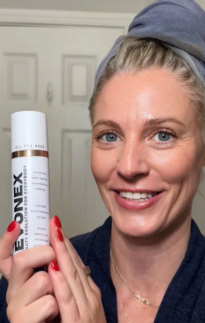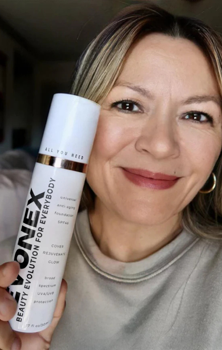 Esta no es solo una base ligera que realza mi tono natural. Evonex me ha hecho retroceder en el tiempo. Mi piel no lucía tan firme y radiante en años. Es como ver mi rostro rejuvenecerse cada día
