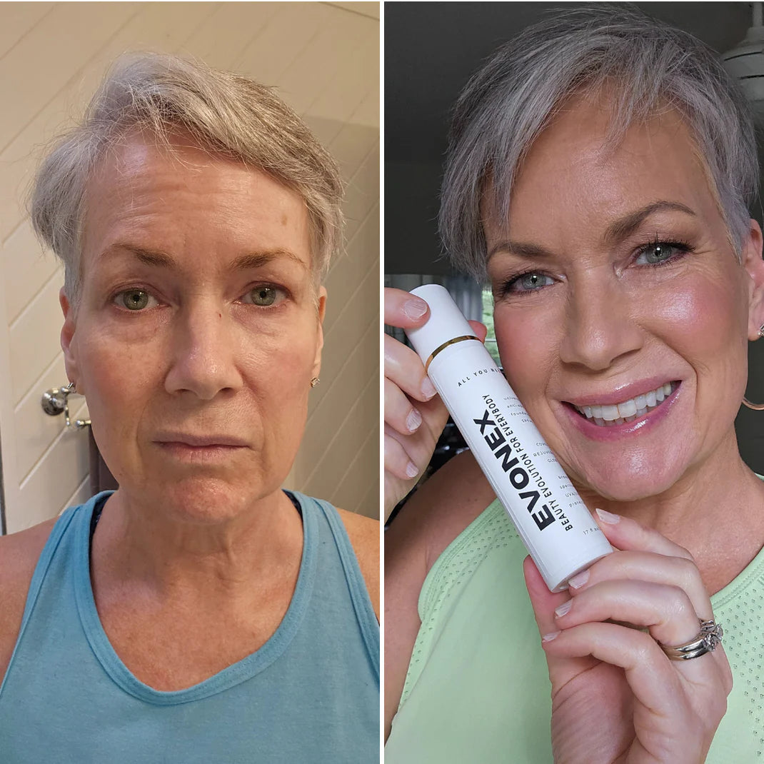 Tras años de esconderme tras capas de maquillaje intenso, Evonex me ha devuelto la confianza para lucir mi look natural, que me encanta. Pero lo mejor es el efecto a largo plazo: después de tres frascos, noto verdaderos efectos antiedad